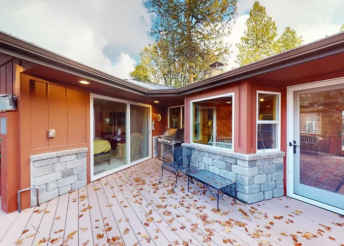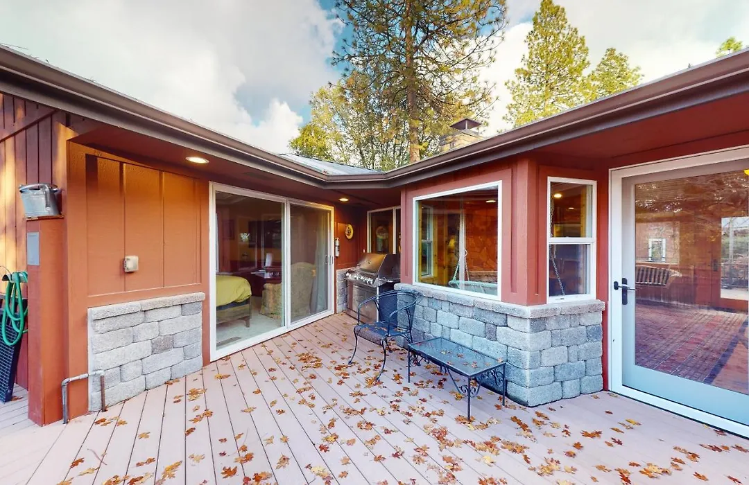 Die 2-Zimmer- The Boomerang House Of Ponderosa Basin verfügt über Parkplätze und eine sonnige Terrasse mit Aussicht auf die Berge.